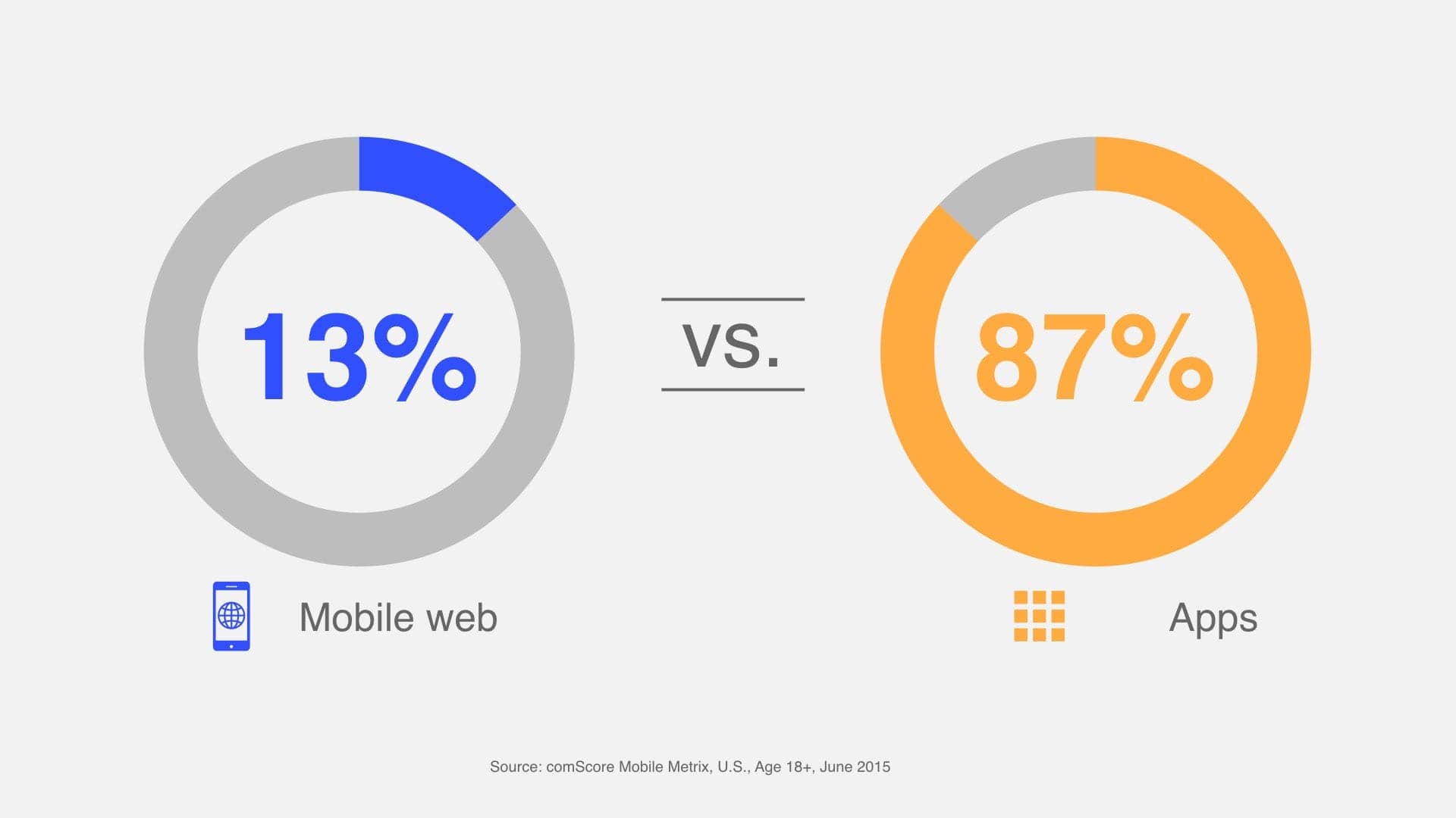 Web 与原生应用在移动平台上的使用时长对比 图片来源: Google
